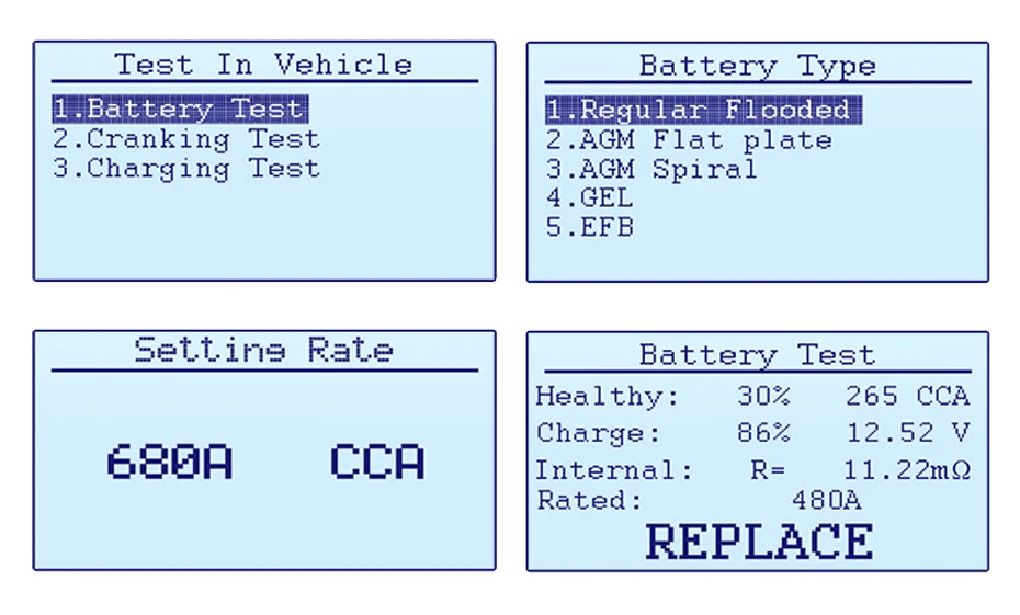 | REPLACE | Battery is failing or has failed | Replace immediately to prevent breakdown |