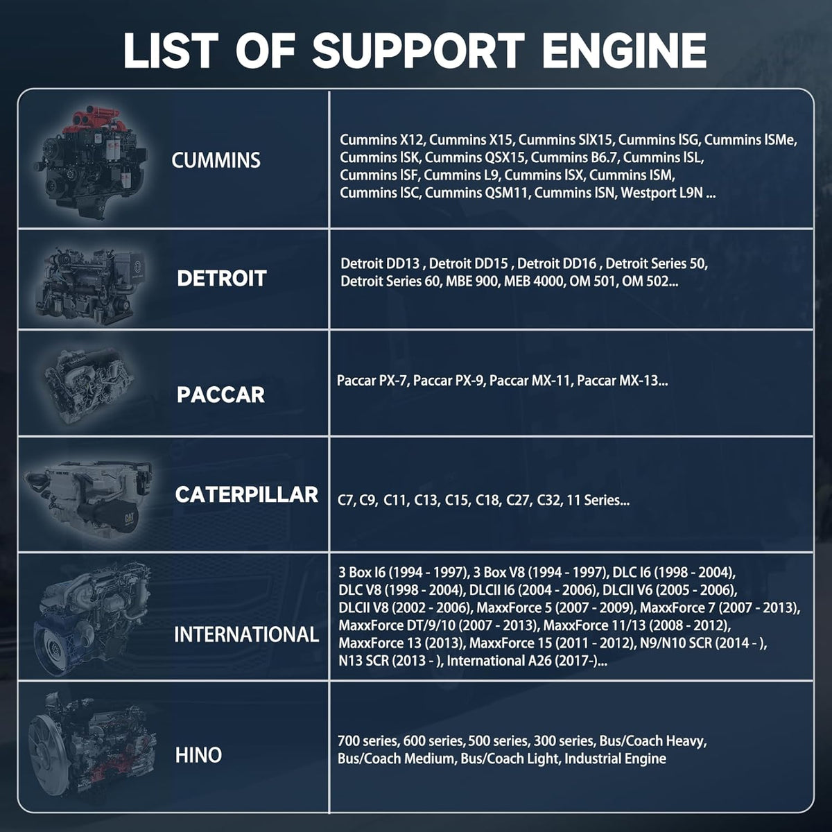 Works with Freightliner, Cummins, Volvo, CAT, PACCAR, Isuzu, Hino, and more