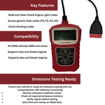 Funciona en todos los coches de 1996, gasolina y diésel. incluyendo vehículos nacionales e importados.